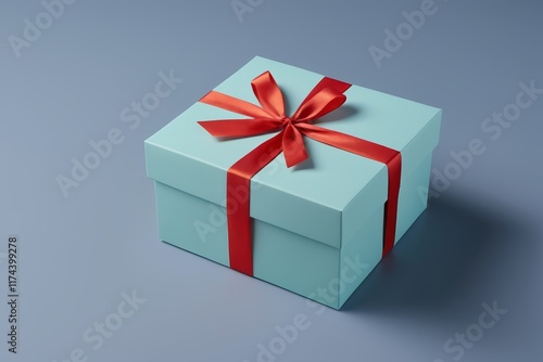 © haiqiang, Obraz premium a close up of a blue gift box with a red ribbon