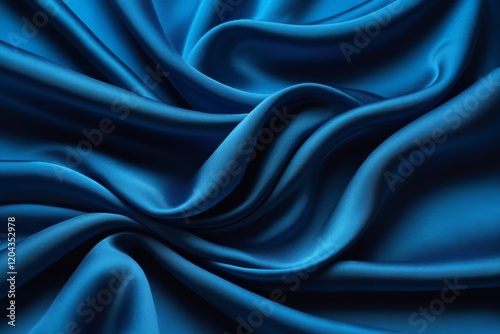 © haiqiang, Obraz premium a close up of a blue silk fabric with a very large amount of folds