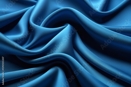 © haiqiang, Obraz premium a close up of a blue silk fabric with a very large wave