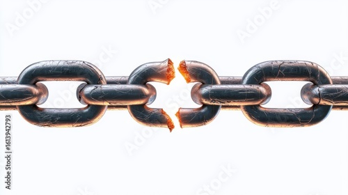 Obraz premium A close-up of a broken chain link with a visible crack representing failure...