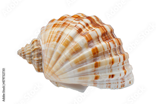 Obraz premium A close-up of a brown and white seashell with intricate patterns, isolated on...