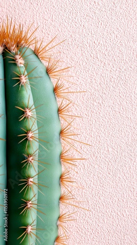 Naklejka premium A close up of a cactus against a pink wall