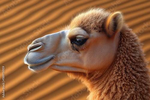 Obraz premium A close-up of a camel's head against a sandy desert background.