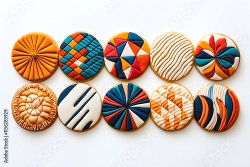 © Thanadol, Obraz premium A close-up of a circular cookie featuring an intricate geometric surface.