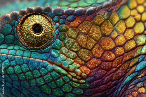 © Loli, Obraz premium A close up of a colorful lizard ' s head