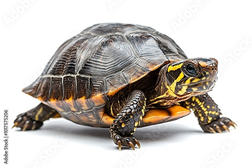 © ardanz, Obraz premium A close-up of a colorful turtle on a white background.
