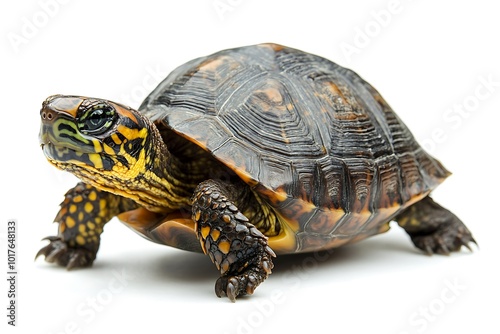 © ardanz, Obraz premium A close-up of a colorful turtle on a white background.
