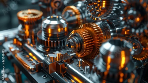 © Nam Sara, Fototapeta premium a close-up of a complex machine with many gears and cogs