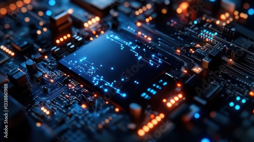 Fototapeta premium A close up of a computer chip with a blue background