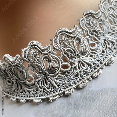 Obraz premium A close-up of a decorative band made from intricate lace, showcasing its fine...