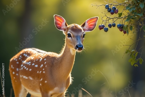 © Zeynep, Obraz premium A Close up of a Deer Standing in a Field Next to a Tree - Generative AI