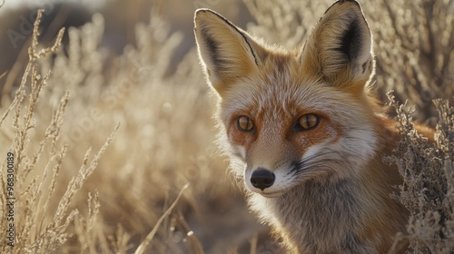 © phattharabodin, Obraz premium A close-up of a desert fox, blending in with its surroundings as it searches for food.