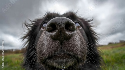 © Wall, Naklejka premium A close up of a dog's nose in a field