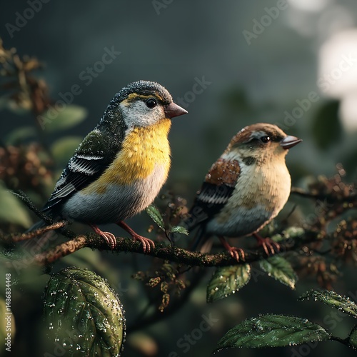 © Nasira, Fototapeta premium A close-up of a European robin on the edge of a stone, perched and looking at the camera, with its head tilted to one side.