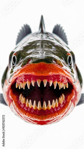 © starush, Naklejka premium A close up of a fish with its mouth open and teeth showing, AI
