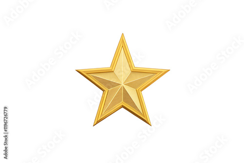 © Tanicsean, Fototapeta premium A close-up of a five-pointed, golden metallic star with intricate surface details, symbolizing excellence or achievement. Isolated on a transparent background
