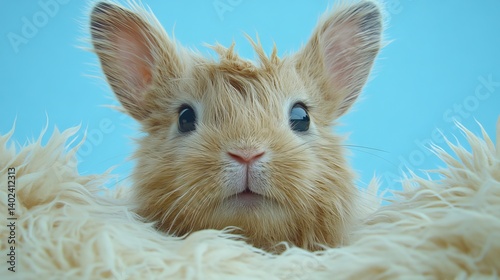 Obraz premium A close-up of a fluffy, light brown bunny.