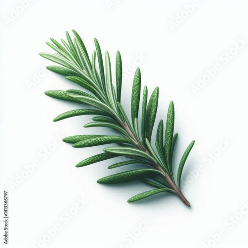 Fototapeta premium A close-up of a fresh rosemary sprig, emphasizing its vibrant green leaves. Ideal for culinary, health, or herbal product promotions.