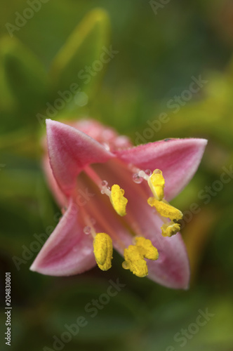 © Kim, Fototapeta premium A close up of a fuschia in early morning dew.