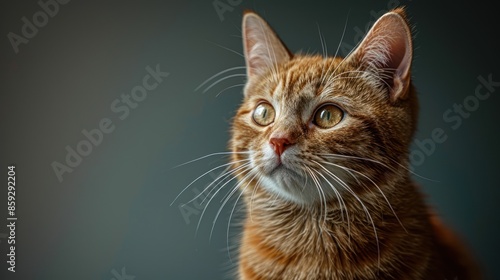 © vimp, Obraz premium A close-up of a ginger cat with captivating green eyes