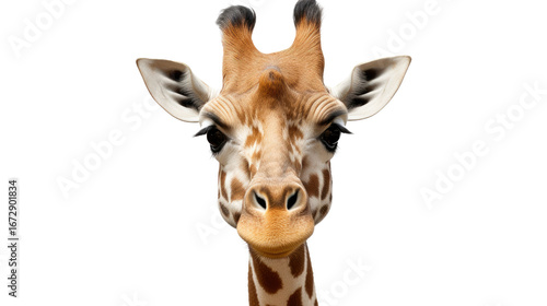 © Muhammad, Fototapeta premium a close up of a giraffe face on white background