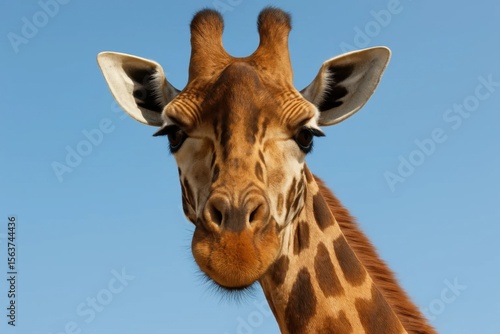 © Viktor, Naklejka premium A close up of a giraffe's face against a blue sky