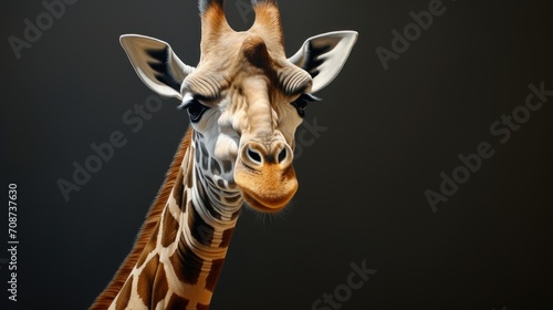 Naklejka premium a close up of a giraffe's head and neck with a black back ground and a black back ground with a giraffe's head.