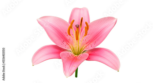 © Ingrid, Naklejka premium A close-up of a gorgeous pink lily in full bloom against a black backdrop.