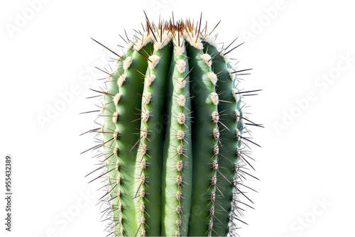 © Wawan, Naklejka premium A close-up of a green cactus with sharp spines against a white transparent background.