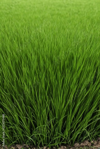 © haiqiang, Obraz premium a close up of a green grass field with a few small plants