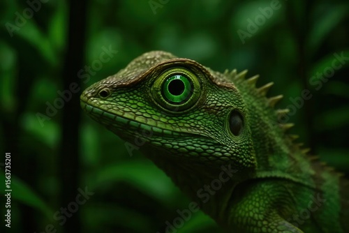 © Viktor, Obraz premium A close up of a green lizard with green eyes