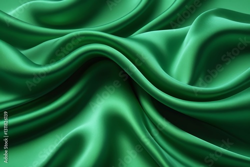 © haiqiang, Fototapeta premium a close up of a green silk fabric with a very smooth look