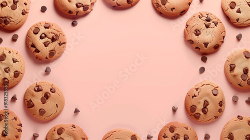 © PNG Pix, Fototapeta premium a close up of a group of chocolate chip cookies on a pink surface