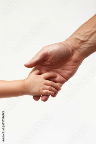 Fototapeta premium A close up of a hand holding the little child's hands, AI