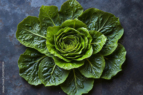 © stanhert, Fototapeta premium A close up of a head of lettuce on a table