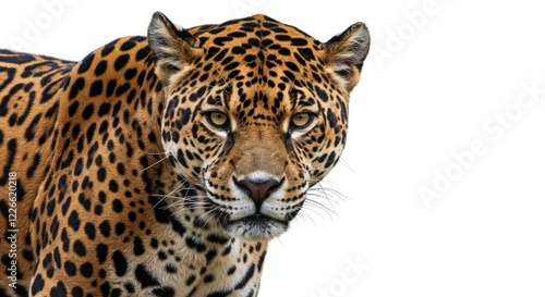 Obraz premium a close up of a jaguar looking a camera on isolated white background