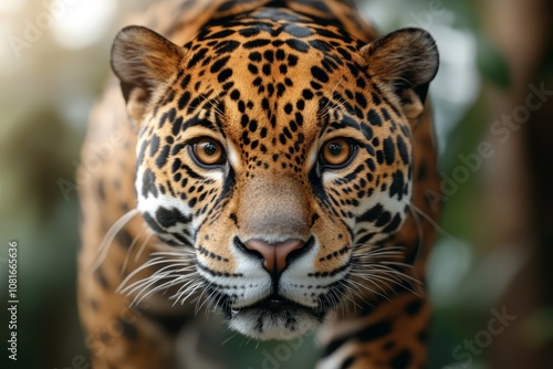 © Ilona, Obraz premium A close up of a jaguar's face in the jungle
