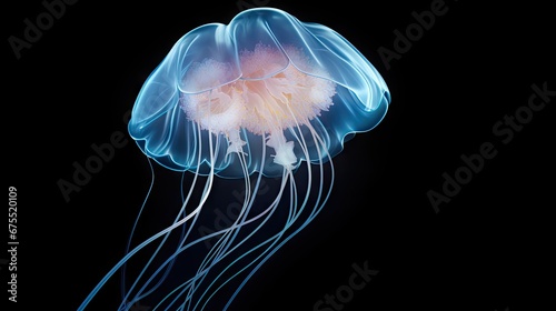 © Anna, Fototapeta premium a close up of a jellyfish in the water with its head turned to look like it is floating in the air. generative ai