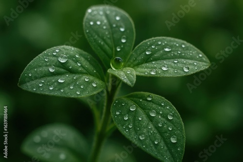© Janis, Fototapeta premium A Close-Up of a Leaf's Water Droplets in Vibrant Green Hues