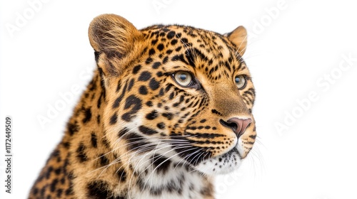 © youthe, Obraz premium A close-up of a leopard's face showcasing its distinct fur patterns and striking eyes.