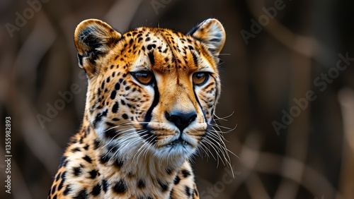 © M, Fototapeta premium A close-up of a leopard with striking features and a fierce gaze.