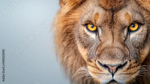 © Janis, Fototapeta premium A close up of a lion's face with yellow eyes