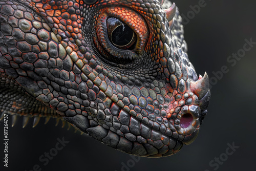 © Formoney, Fototapeta premium A close up of a lizard's face with red and black markings