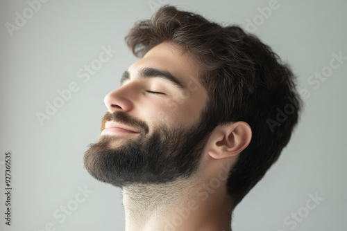 © MagnusCort, Obraz premium A close up of a man's face with her eyes closed