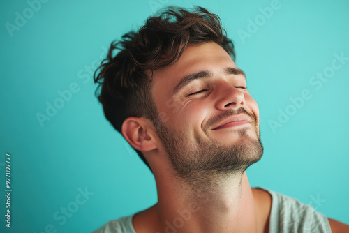 © MagnusCort, Fototapeta premium A close up of a man's face with his eyes closed
