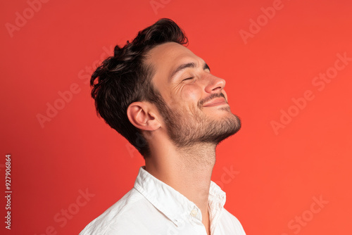 © MagnusCort, Fototapeta premium A close up of a man's face with his eyes closed
