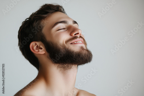 © MagnusCort, Obraz premium A close up of a man's face with his eyes closed