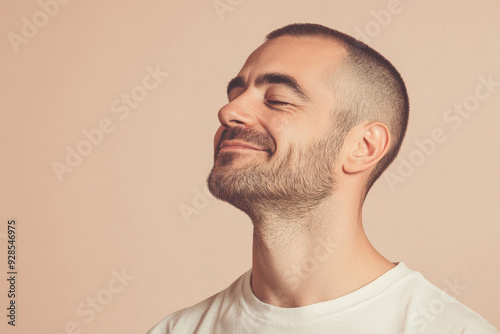 © MagnusCort, Obraz premium A close up of a man's face with his eyes closed