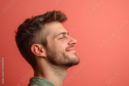 © MagnusCort, Obraz premium A close up of a man's face with his eyes closed