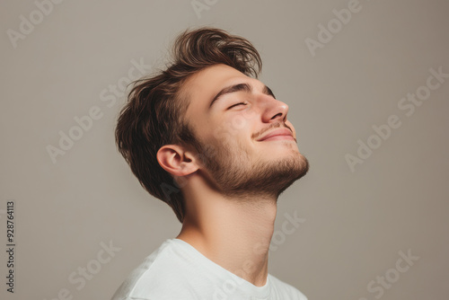 © MagnusCort, Obraz premium A close up of a man's face with his eyes closed